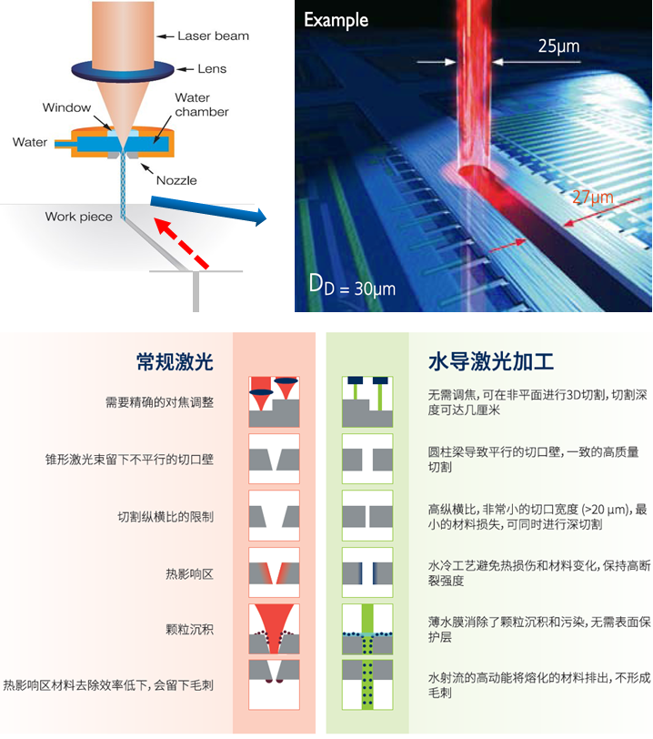 相比傳統(tǒng)激光切割,水導(dǎo)激光具有以下獨(dú)特優(yōu)勢(shì):