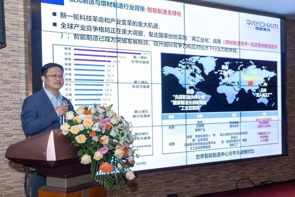 活動初始,與會嘉賓共同參觀了作為承辦單位之一的蘇州中科激光智能制造創(chuàng)新研究院成果中心,研究院院長邢飛接待并介紹道:“激光院是面向航空航天、汽車制造以及醫(yī)療等領(lǐng)域技術(shù)需求,重點布局激光增材制造(金屬3D打印、激光熔覆)、激光焊接、水導激光等激光制造技術(shù)的研發(fā)和成果轉(zhuǎn)移轉(zhuǎn)化?!?/p>